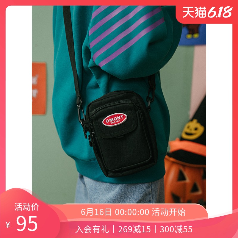 omont蛋挞家 万圣节复古刺绣黑色牛津纺包宽肩带斜挎包包包秋冬