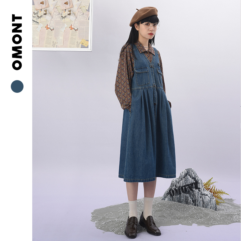 omont蛋挞家 复古毛呢大衣女中长款人字纹呢外套新款秋冬
