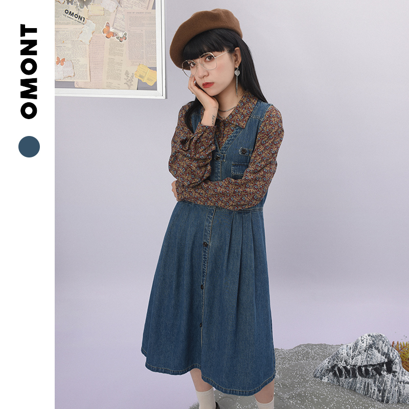 omont蛋挞家 复古高腰修身樱桃印花裙女吊带蛋糕裙中长款连衣裙夏