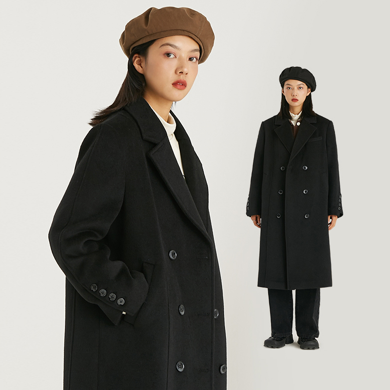 omont蛋挞家 复古毛呢大衣女中长款人字纹呢外套新款秋冬
